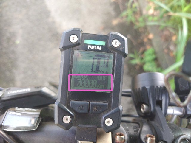 運動不足解消に使っている電動自転車のオドメータが鴻巣にあるロピア吹上店に向かう途中で、30000kmになりました。購入時のオドメータは100km以下だったので、3年と8ヶ月くらいで約30000km走ったことになります。購入した時のページはここです。