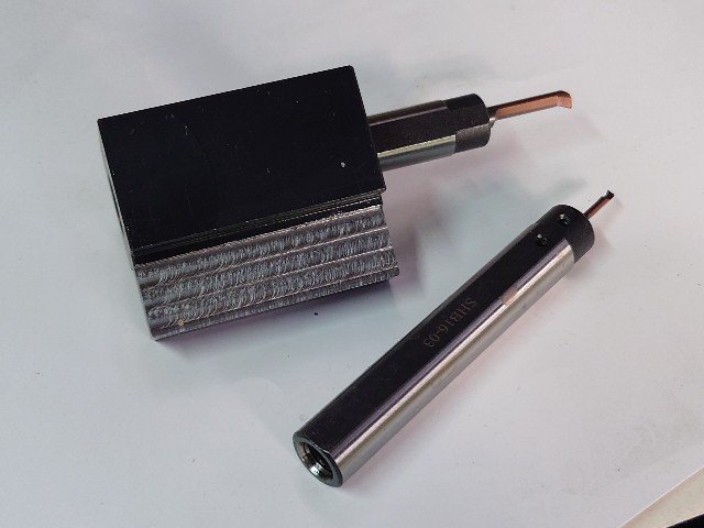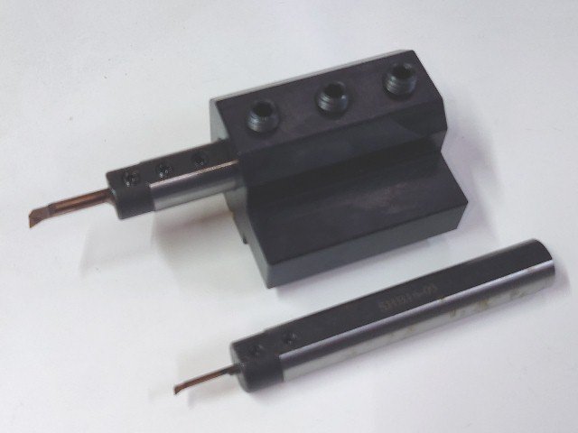アリエクスプレスで購入の旋盤用の3mmと6mmの中ぐりバイトとオフセットホルダが到着しました。ホルダの内径は16mmです。シャンク厚みも16mmですが、底面を少し削らないと刃先が旋盤の中央に来ないです。