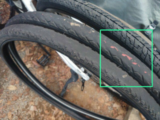 電動自転車のタイヤは30000kmを超えてキリが良く、下の層が出てきたので、前後とも新品に交換しました。前が初交換、後ろは3回目です。
