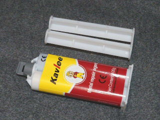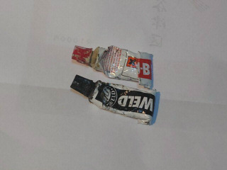下は今まで使っていたジェービーウェルドのエポキシ接着剤です。50g強で1600円位です。最後の方はチューブがベタベタになり、キャップも閉めづらくなります。