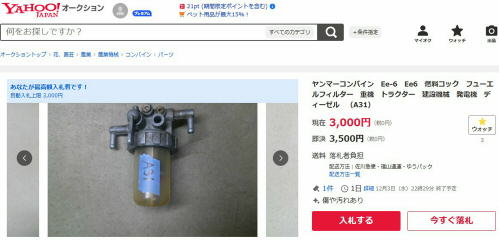 ヤフーオークションで似たコック/ストレーナが出ていたので入札しました。