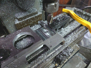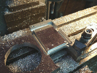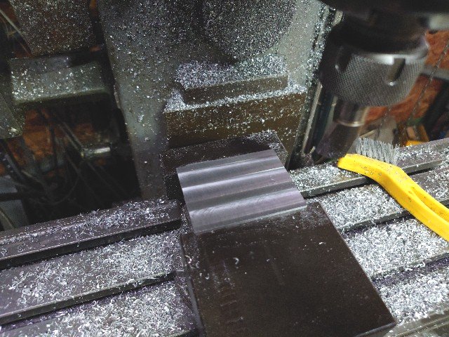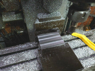 アルミ端材から、CNCフライスで切削完了です。固定とケーブル取り出し用の穴の6ヶ所はポンチの代わりにドリルで浅く加工しておきます。2mmづつ削って、1時間くらいかかりました。