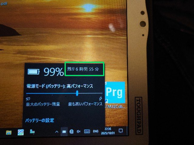 7インチタブレットの電池ステータスです。満充電で7時間弱です。