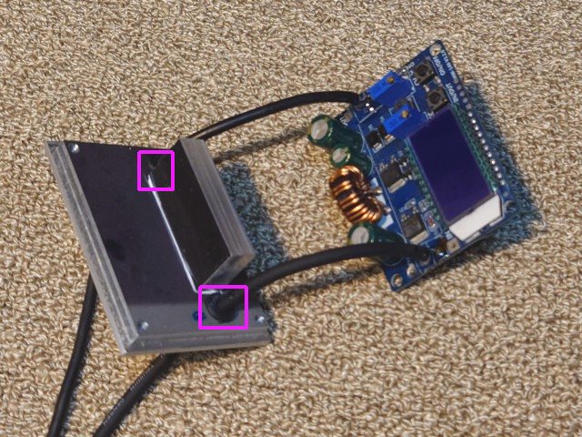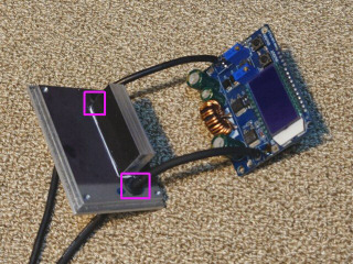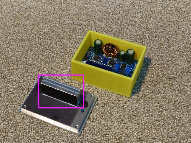 3Dプリンタで作ったケースは缶スプレーの艶消し黒でペイントして、カバーを閉じました。安定化電源を繋いで確認を行いました。起動中の充電時は2Aくらい、充電のみで1Aくらい電流が流れます。動作良好です。