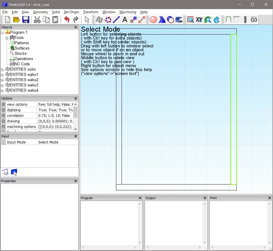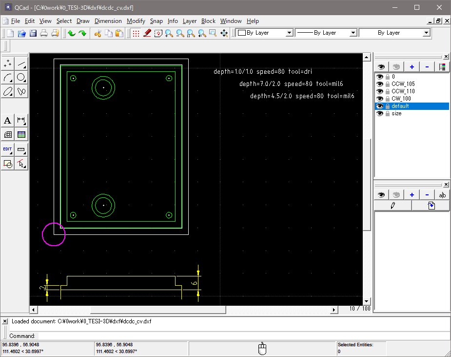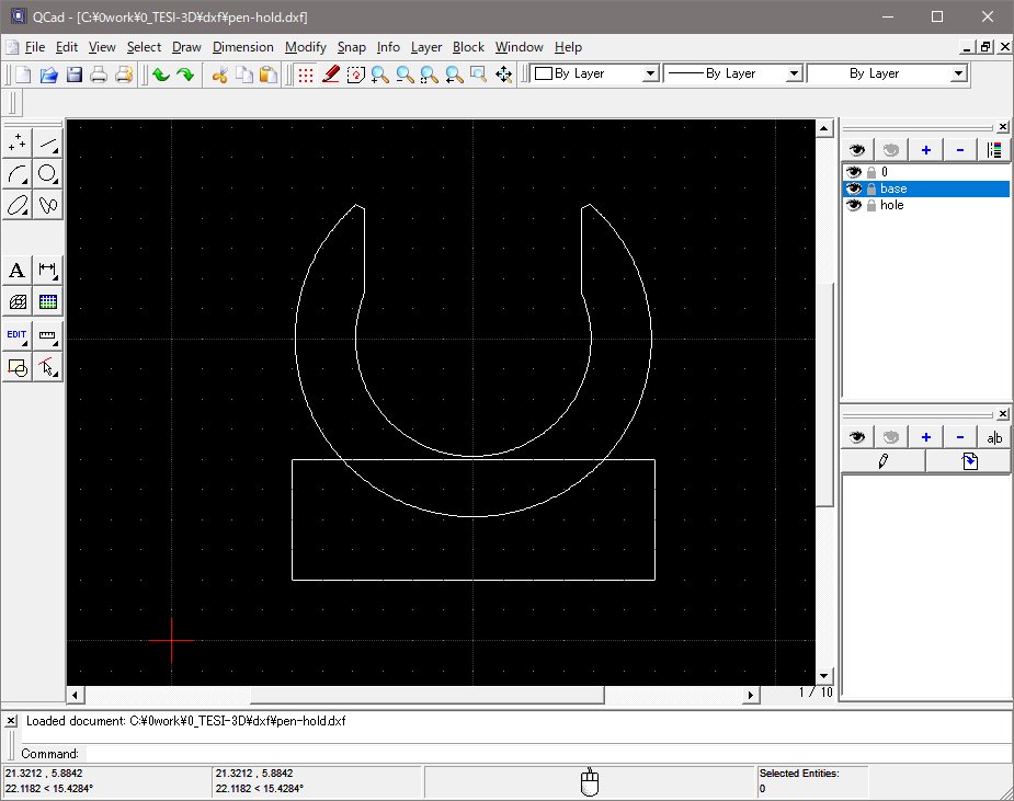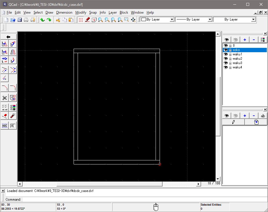 初めに下側ケースを作製します。Qcadで2Dデータを作成してDXFでセーブします。
