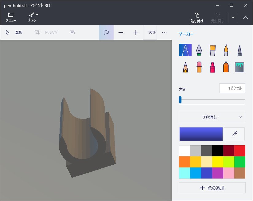 3Dプリンタでスタイラスペンのホルダ作ります。いつものように、2D図面から引き出しで3Dに変換後、STLファイルから、スライサでgcodeを出力しました。