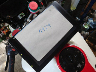 7インチのタブレットが到着しました。10インチのタブレット上に乗せてみます。10インチのディスプレイと同じサイズです。早速、TunerStudioとログビューアをインストールしてみました。