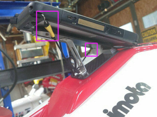 帰りは高速で帰ります。寄居SAで休憩中。タブレットはもう少し前に移動させた方が見やすいですが、ステーの角度の変更も必要です。