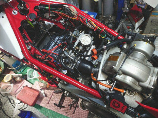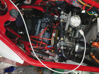7インチタブレット用にUSB/電源ケーブルの取り回しを変更します。タンクとエアクリーナボックスを外しました。