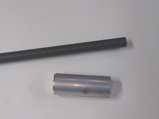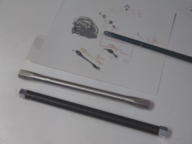 シフトロッドをカーボンロッドで再作します。上はヤフーオークションで購入の外径10mmの中空カーボンロッド、下はA7075ジュラルミンの端材です。