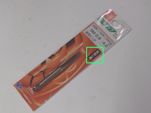 ピロボールの片側は左ネジなので、アマゾンで5mmの左ネジタップを購入しました。
