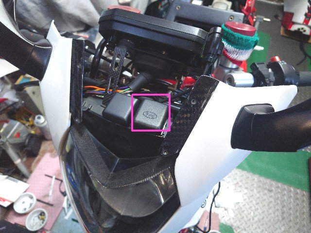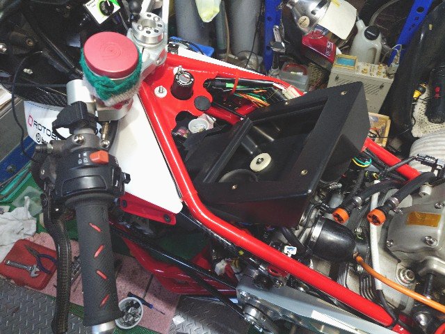 タンクとエアクリーナボックスを外して、USBケーブルの取り回しを変更しました。