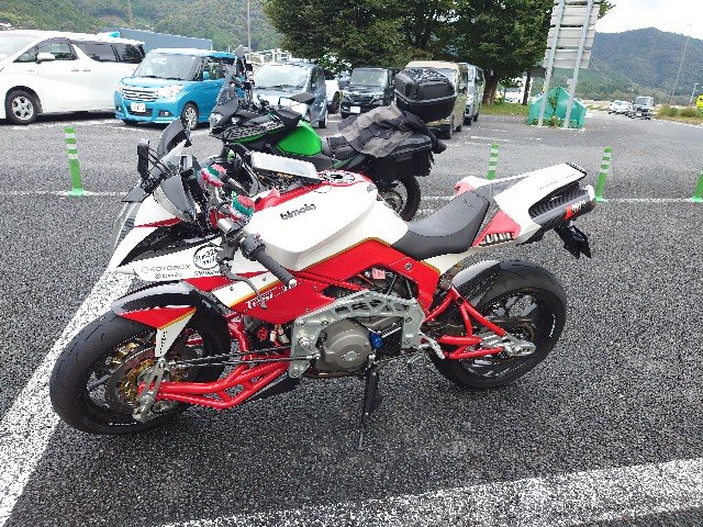 ジョイフル本田の新田店までステンレスシムの購入を兼ねて試走しました。スマホを忘れてジョイフルの写真はありません。工具入れは今のところ溶けてないです。 無事帰還しました。