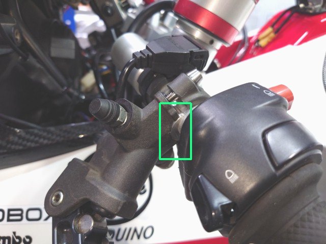 早速、クラッチマスタに挟んで、取り付けてみます。良いようです。
