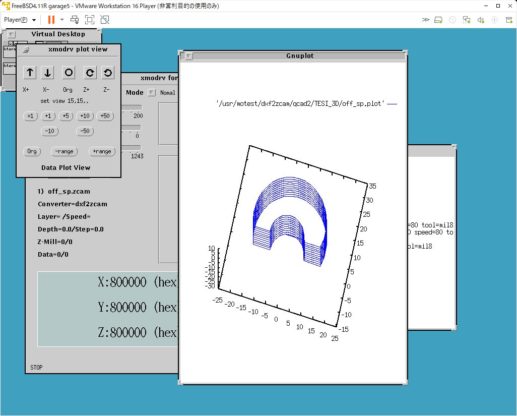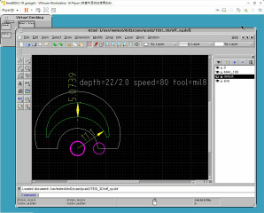 PCのFreeBSD仮想環境でツールパスを確認します。厚み22mmを2mmで11回切削します。