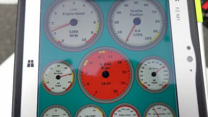 アイドルの燃調を薄くして、隣町のスーパーマーケットまで試走しました。下はTunerStudioのAFR計の短い動画です。ゆっくり交番しています。