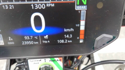 勝沼で高速を下りて、現地に11時15分に到着しました。片道約136kmです。満タンにして131km走って、給油すると、約5.1Lしか入らなかったです。O2センサで燃調補正すると、燃費が良くなります。