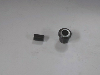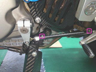 オリジナルのシフトロッドとタップでネジ切りの終わって半分完成した両端ナット部品です。オリジナルはネジの勘合部分が短いです。