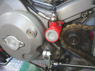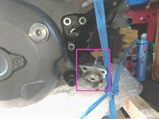 の移動距離が足らないのが原因と思われます。純正のクラッチレリーズを1198SPに付いていたSTMの28mm径に交換したのが原因と思われます。純正は26mmと思います。そこで、以前に購入した部品取りエンジンから純正のクラッチレリーズを外して交換してみます。赤枠が取り外したクラッチレリーズです。ロッドに直角に細い回り止めのバーが付いているタイプでした。