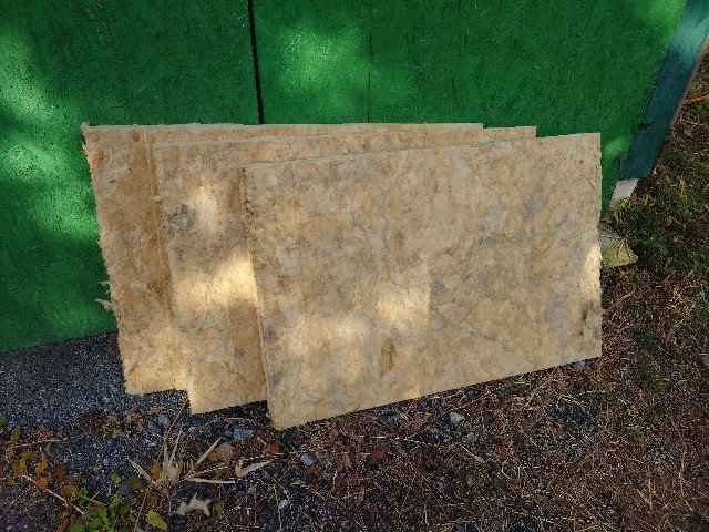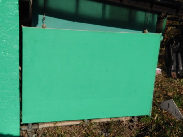南側のディーゼル発電機の防音パネルを作り直します。初めに解体します。5.5mmの合板て作ってあり、3x6の下に30cmくらい繋げてあります。