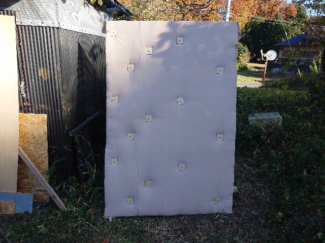 防音パネルの続きです。3x6に約30cm継ぎ足しました。吊り下げ部も追加しておきます。