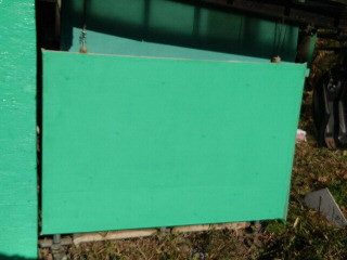 防音パネルの続きです。 パネルを南側の外壁と同じうすわかくさ色で塗装しました。これで防音パネルの再作は完了です。