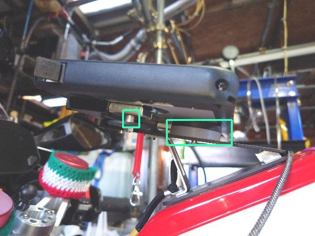 赤枠が対策後のステーとスペーサです。6角穴付き6mmボルトと4mmボルトの2段構成で固定します。