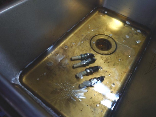 燃調が濃くて、プラグが真っ黒です。