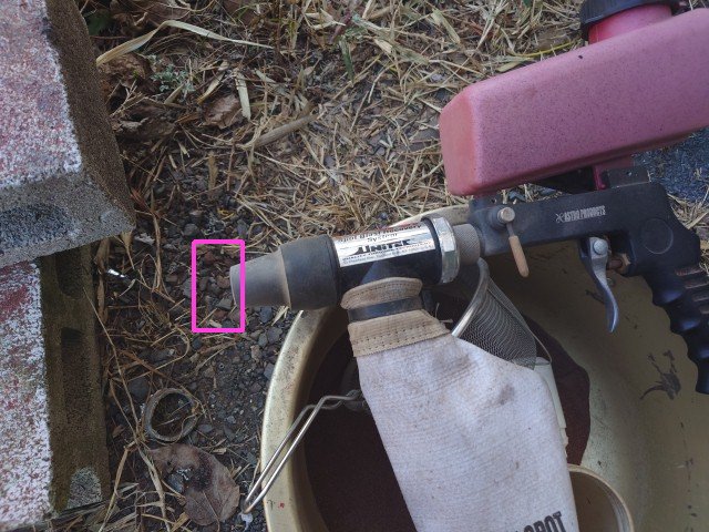 サンドブラストの先にプラグ用アダプタを付けて、赤枠にプラグを付けてサンドブラストします。