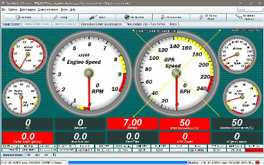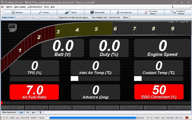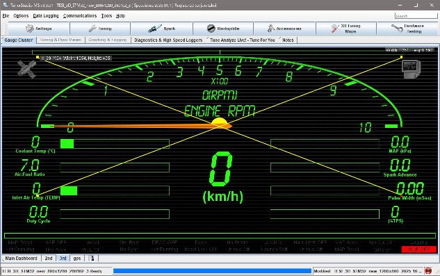 TunerStudioのメインゲージを横置きでデザインし直しました。