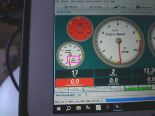 調べたところTPSがズレていました。アクセルオフで2.0%に上がってました。母屋のPCで作ったTunerStudioのプロジェクトをタブレットに移行した時にパラメータを上書きするとズレが起こります。キャリブレーションを行い実車に合わせました。
