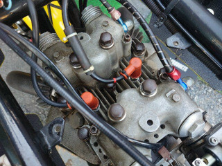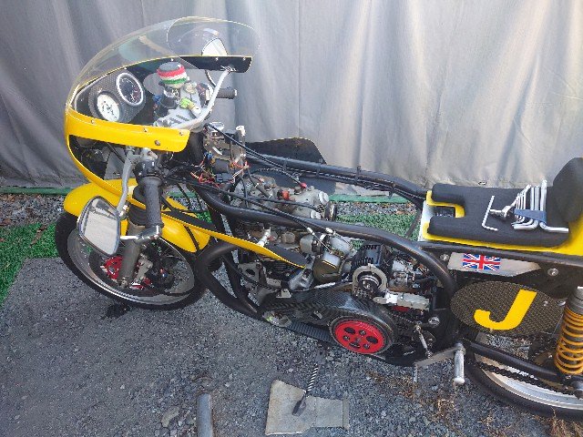 2号車はまだ続きます。2号車のエンジンは元々、このフレームにのっていたエンジンでした。1号車のエンジンはバーニアカムギアの付いているエンジンの乗せ換せ替えてました。1号車に元々載っていた原チューンのスペアエンジンが手元にあります。