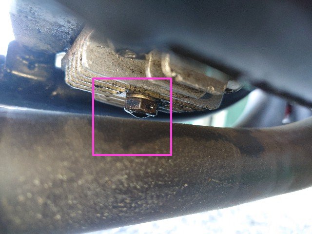 ヘッド以外ではエンジンオイルのドレン付近、漏れてます。直ぐ下はエキパイです。