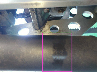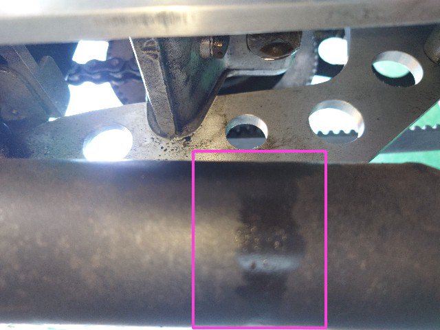 続いてギアボックスのドレン付近。ここも漏れてエキパイにかかってます。