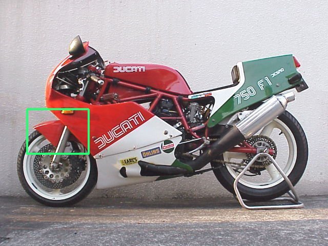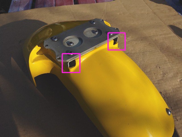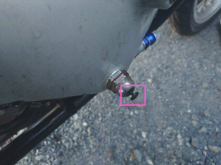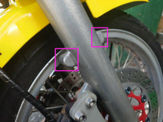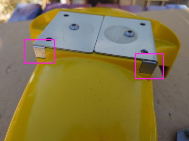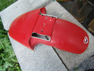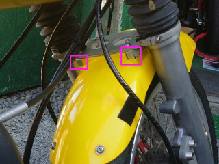 現在付いているフロントフェンダは赤枠のように穴が開いているので、塞ぎます。