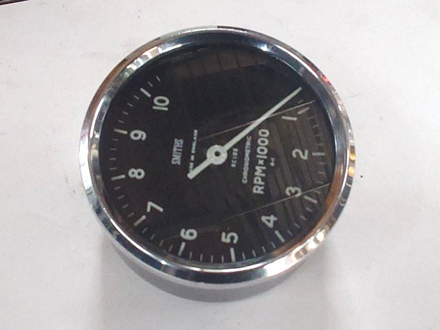ヤフーオークションで購入のクロノのタコメータが到着しました。外観はそこそこキレイですが、ベゼルのゴムは劣化してカチカチです。