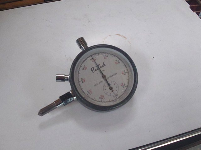 タコメータの動作確認を行います。下は汎用の回転計です。計測ボタンとリセットボタンがあり、計測ボタンを押すと計測が始まり、ゆっくり針が動きます。