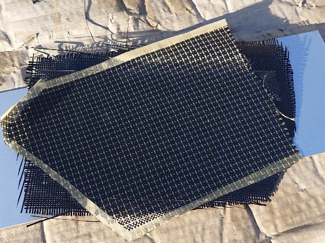 電動自転車の運動不足解消から帰ると、カーボン板の樹脂が硬化していました。早速、離型しました。ちゃんと積層できていて良かったです。