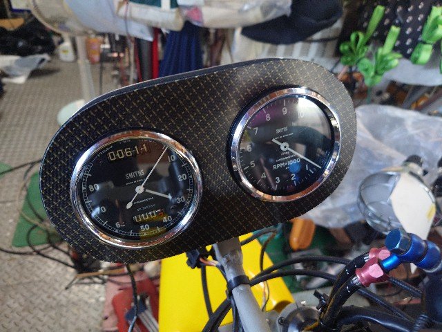 タコメータのアングルギアは少し調整するだけで使えました。因みに、ケーブルの取り付けネジは12mm、1mmピッチです。メータ固定も6mmネジです。これはスミスのクロノはフランスのイエーガー社なので、ネジはミリ系です。