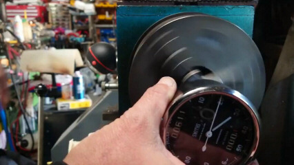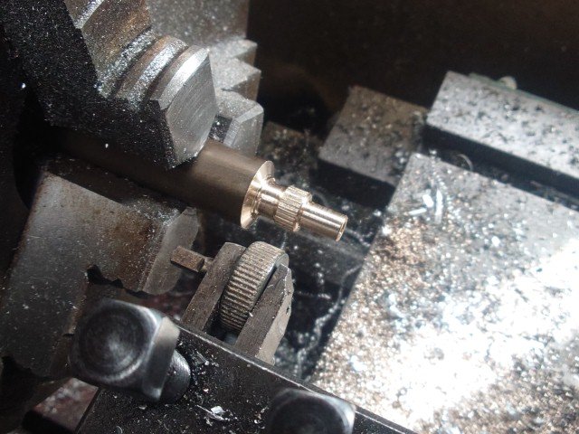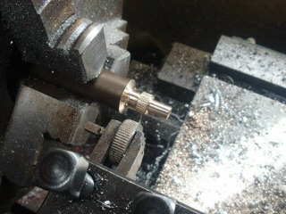 スピードメータのオドメータのリセットノブを真鍮の棒から作りました。久しぶりにローレット加工しました。