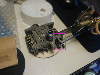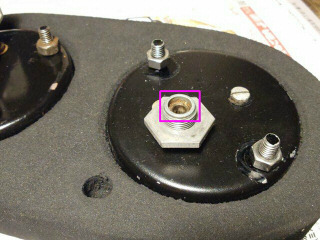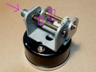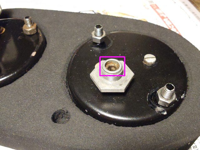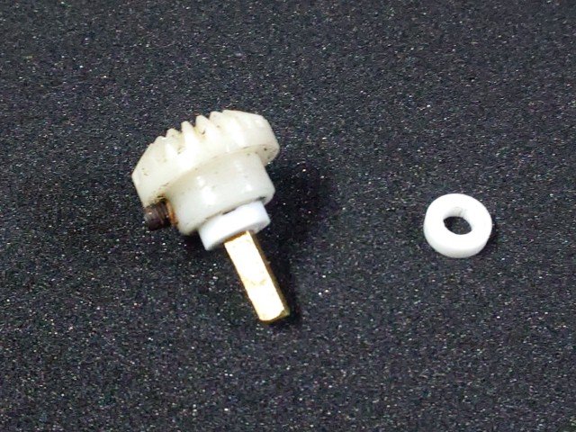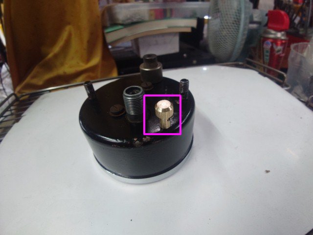 ロッドはメータに刺さっているだけで、そのままだと、少しグラグラします。テフロンで外径は8mm、内径4mm、2.5mm厚のワッシャを作ってグラグラ防止します。赤枠にワッシャが入ってグラグラが低減されます。タコメータ用にも作っておきました。