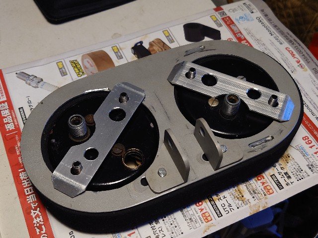 押さえプレートにサンドブラストして、オドメータのリセットノブは回しやすいように25mmほど延長しました。