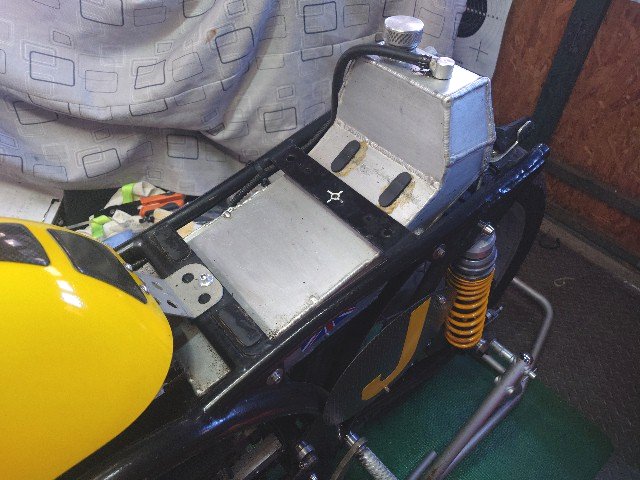 車体のステーに接続するL字金具の位置を中央に移動しました。仮止めしてみます。いいようです。