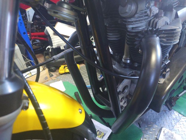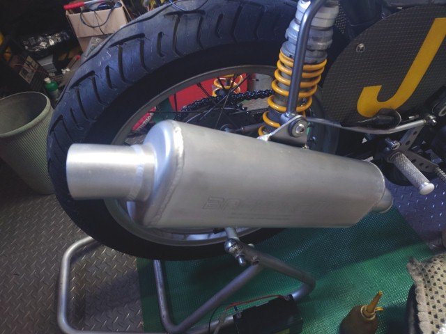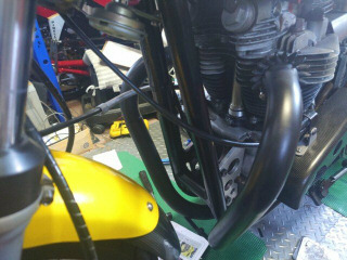 エキパイ、サイレンサも戻します。シリコンシーリングが硬化したら、オイルを入れます。