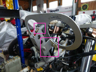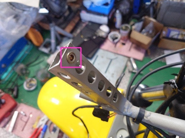 車体側のステーの上部に4mmのブラインドナットを追加してグラグラ防止します。