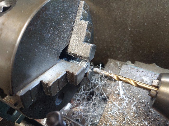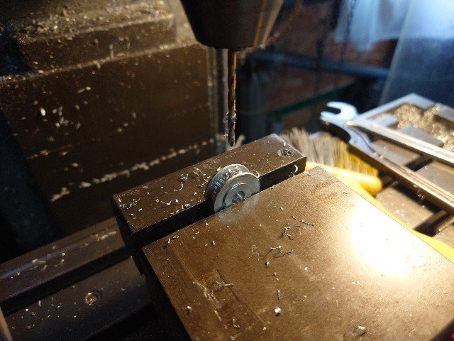 プーリはフランジ無しタイプなので、歯面に直接2.5mmの穴を開けて、タップで3mmのネジを切ります。