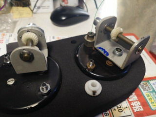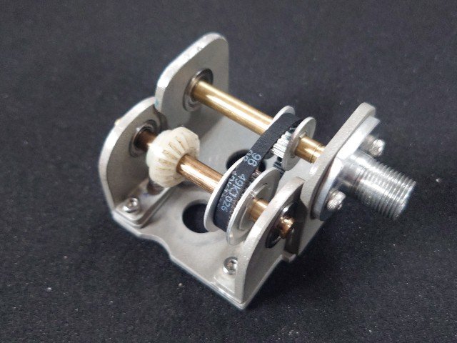 ベルトのテンションが調整できるようにステーには長穴加工します。その後、ベルトを通して2つのプーリをセットスクリューでシャフトに固定しました。