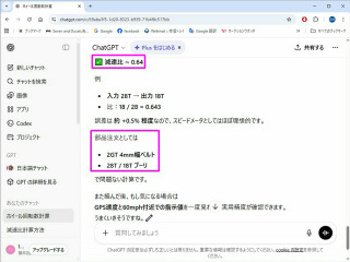 タイミングベルトで減速します。chatgptに聞いてプーリ選定しました。条件はGT2の
