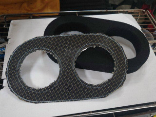 メータパネルのカーボン板と30mm厚のスポンジゴムをラフに加工します。