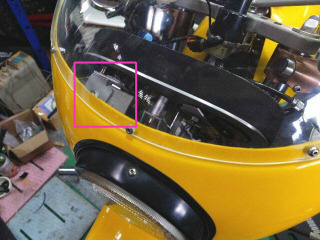 フロントカウルを外して、メータパネルを取り外しました。